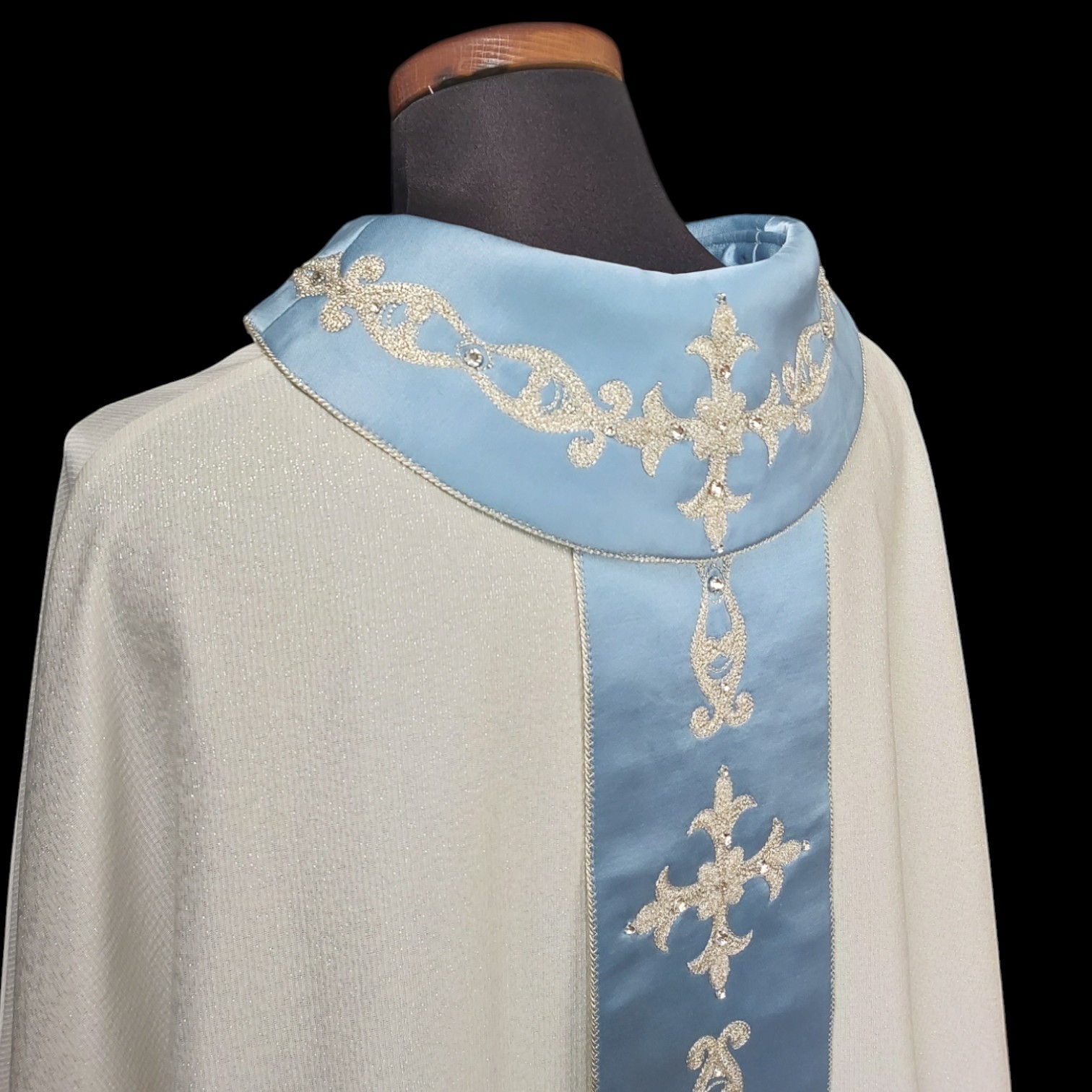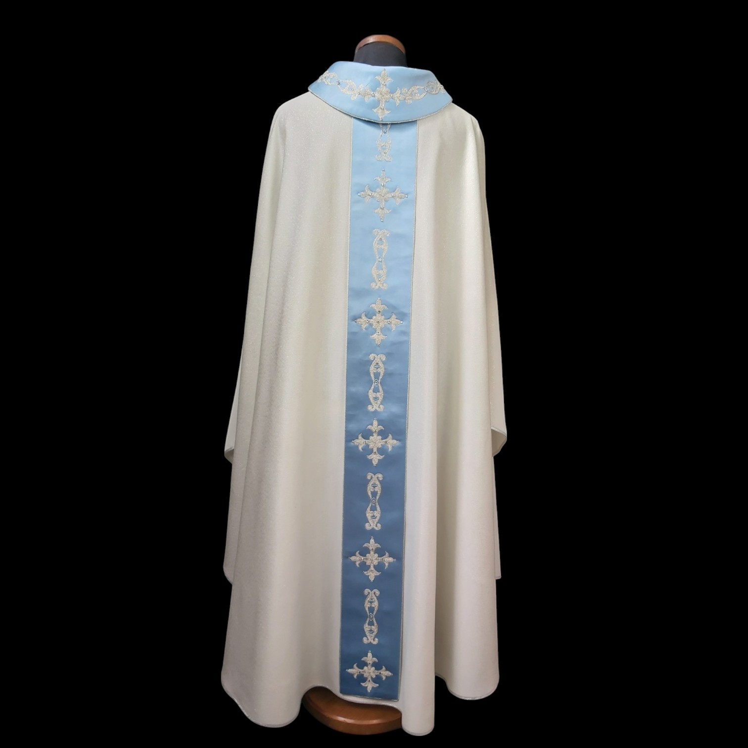 La Casula modello San Domenico è uno dei capi di punta della nostra collezione di paramenti sacri, sinonimo di eleganza e tradizione. Questo modello è stato creato con la massima attenzione per ogni dettaglio, diventando un simbolo della qualità e dell’artigianalità della nostra sartoria.