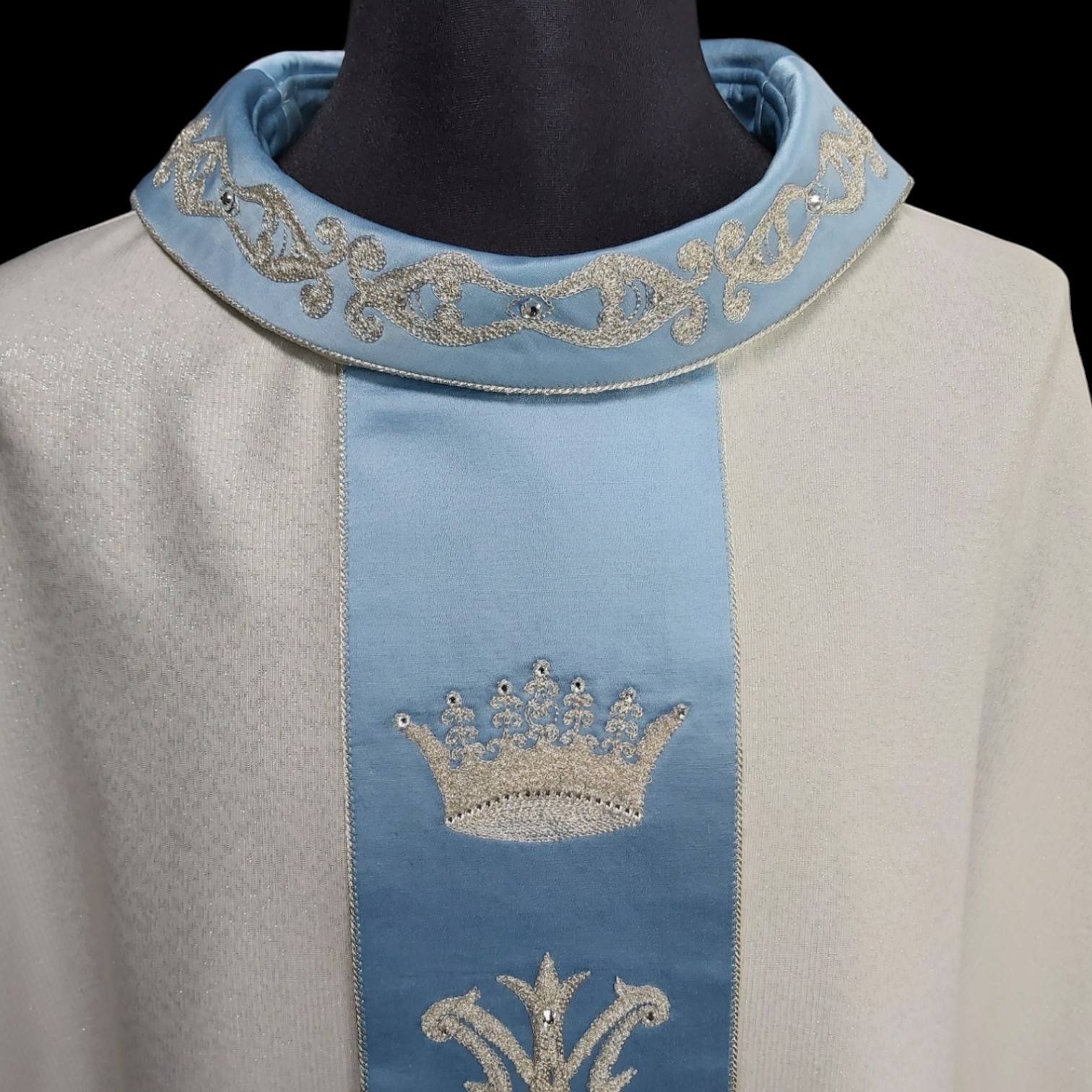 vi presentiamo la casula San Domenico, con il nostro collo cocolla, che si distinguono per il loro stile classico e per l’eccellenza dei materiali. In ogni modello, i ricami sono realizzati a mano su tutta l’area del paramento, con una precisione che solo l’esperienza artigiana può garantire.